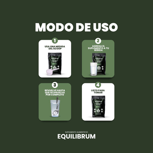 Tomar una porción diaria de 5g (una scoop incluida en el paquete), disuelta en agua, té o tu bebida favorita. Puedes tomarlo en la mañana para empezar el día con claridad mental o en la noche para relajarte antes de dormir.